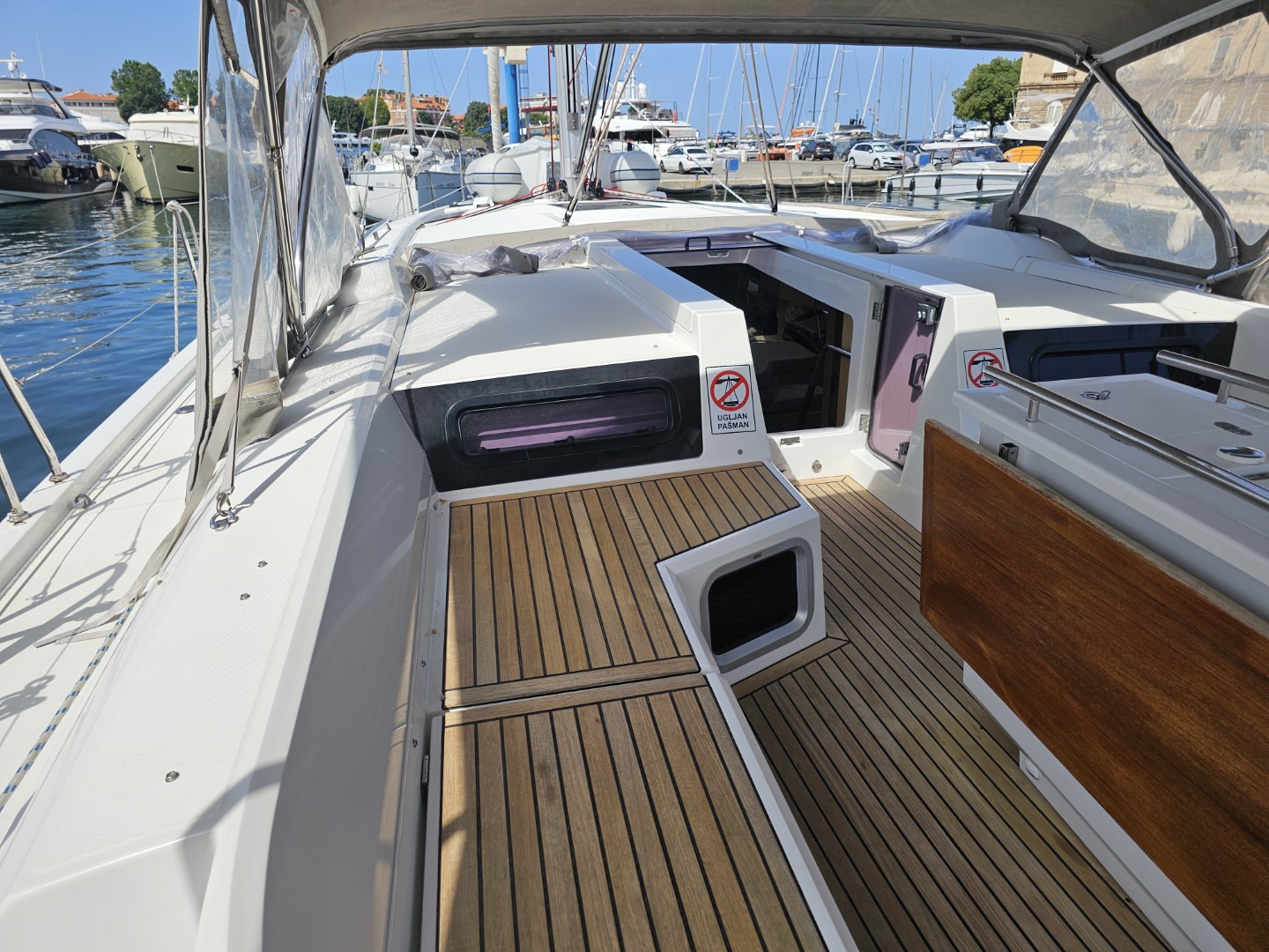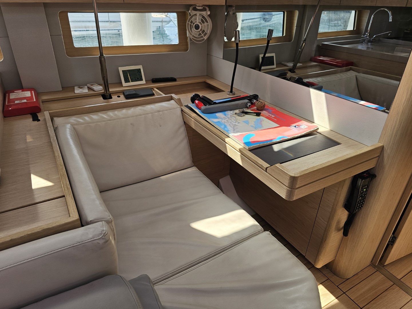 AC in every cabinAC in the saloonBatterieBunk bedsConvertible tableEstintoreCongelatoreFrigoriferoIMRAY MAPSOutside speakerSunbeds220 volt socketCooking utensilsCrockery&CutleryCarte nauticheSpray-hoodWind speedPilota automaticoGPSCockpit control panelManualePlotterBussola da rilevamentoBussolaBinocoloRazzi di segnalazioneGiubbotti di salvataggioLuci di navigazioneEPIRB - Boa di emergenzaBoa galleggianteTorciaHorse shoe bouyKit di primo soccorsoV.H.FTavolo in pozzettoBiminiCassetta attrezziShips licenceTenderScaletta per il bagnoAcqua caldaAltoparlanti in pozzettoCucina a gasDiving maskBombola del gasFlippersPompa di sentina elettricaSalpa ancora elettricoWC elettricoPannelli solariElica di pruaUSB Chargers in every cabinCuscini in pozzettoTeak on CockpitFans in every cabinFull Safety EquipmentShower on deckZattera di salvataggioTimone a ruotaBridge GPS PlotterGeneratoreRudders