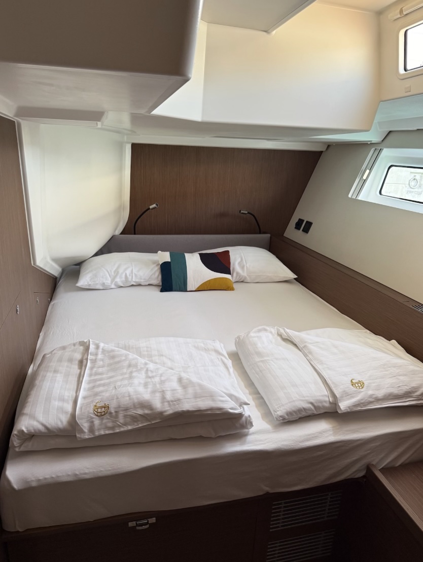 Zattera di salvataggioSignal rockets and torchesTenderSafeWine cool boxFUSION sound systemPonte in teakCuscini in pozzettoSalpa ancora elettricoTavolo in pozzettoParabordiCime di ormeggioPozzetto in teakAltoparlanti esterniUnderwater lightsDishwasherFornoMacchina del ghiaccioKitchen utensilsFrigoriferoNespresso machineWC elettricoLenzuolaCusciniAsciugamaniAttrezzatura per lo snorkelingStern thrusterSet di navigazionePilota automaticoGiubbotti di salvataggioLife belts (Safety harness)Kit di primo soccorsoEstintoreHorseshoe lifebuoyRadio VHFWinch elettricoGeneratoreInverter12V SocketSUP