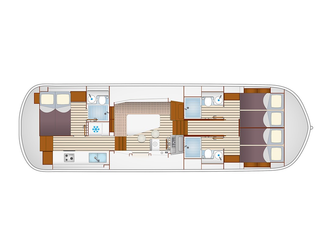 Indoor/Outdoor steeringOutside terraceDoccetta esternaScaletta per il bagnoBiminiElica di pruaRadio + USBFully equipped kitchenRiscaldamentoAria condizionataStufaFrigoriferoCongelatoreWC elettricoForno