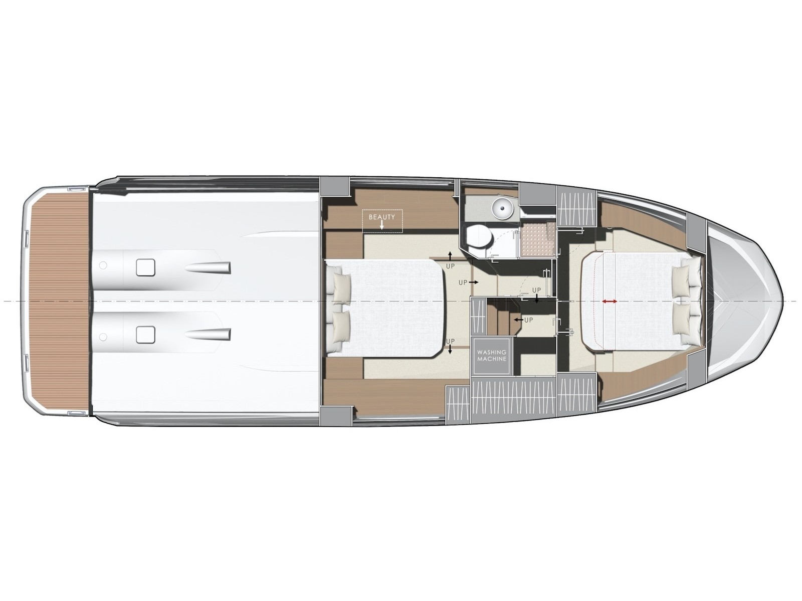 Digital speedometerSounder (Simrad)Side fendersLuci di navigazioneAnchor lightsNavigation mapBussolaSolcometroPilota automaticoVHFRadarGPS ChartplotterChartplottermp3 RadioCockpit and cabin speakersRadio/CD2 x TV (saloon and owner's cabin)Ambient lighting for the cockpitAria condizionataAcqua caldaRight window in the saloonElectronic safeReading lights in the owner's cabinFolding ''Luxe'' table in the saloon on an electric pedestalWooden floor at the entrance and in the saloon ''Light Oak'' parquetCarpet ELEGANCE in the cabinsCarpet in the saloon and entranceFreezer drawer/ice maker Washing machine/dryerVacuum toiletSalpa ancora elettricoDoccetta esternaPlancetta Specchio di PoppaTeak DeckSunbathing cushions on the bowProtective covers for the bow sunbathing area, cockpit benchFender holders on the bow railDeck washing pump with sea/fresh water connections in the anchor locker and cockpitShore water connectionTeak table in the cockpit on a telescopic pedestalBow sprit with folding ladderMattres for the cockpit table ''Eucalyptos''Teak flooring in the cockpit and on the platformMooring set (Delta anchor, 50 m chain)Quick Aleph anchor windlass with rope drum + chc1203 chain counter + 1-meter alarm with two foot control buttons on the bow8 Polyform fenders with ropes, 2 mooring ropes d18 12m, mooring rope d18 30mCanopy set (Bimini, cockpit shades, cockpit enclosure set, window shades, roof canopy with solar panel hole)Hydraulic submersible platform Hydraulic telescopic gangway with additional GRP teak stepsWaterproof socket 12 V + 220V in the stern storage area PosateFrigoriferoCongelatoreSinks (num.)Stove with ceramic hobMicrowave/grillStainless steel refrigerator with 2 drawers 144 litersUpgrade for ''White Corian'' kitchen countertopDishwasher Cavo 220VGeneratorePannello solareSolar panels - flexible with charge controllerInverter 2,000 WInverter air conditioning system (Compact 16,000BTU for the saloonTender gonfiabileSliding mounts for dinghy Dinghy with el.outboard engine with chargerCompressor for inflating the dinghy Ancora di rispettoEstintoreAncoraCatena di ancoraggio calibrataKit di primo soccorsoSalvagenteRazzi di segnalazioneAdditional mooring cleats on the sternAdditional anchor windlass control with digital chain counterAutomatic fire extinguishing systemCuscini e coperteStazione VentoCarte nautiche e guidaStrumenti carteggioGiubbotto di salvataggioMain switchBattery charger (cable)Pompa di sentinaCovers for bow windowsCovers for the command panelmain and spare ropesMain and spare anchorsSalpa ancoraElectric gangwayBiancheriaRope cutters on the drive shaftsInsect screens for hull windowsWine cooler in the storage areaFreezer/ice makerEl.outboard engine with chargerWatermaker AN-50 50/lit/h - 12VHull wrapped in 3M foil blue color palette220 V Shore connectionSpeakers (cockpit, cabin)Digital chain counter GalleyHydraulic gangwayBatteries (2 x engine + 4 x small service)Hard topJoystickSprayhood (sunshade)Electric trim flaps Cockpit shower (cold+hot)Internet 3G/4G 5GB USB ports12V connectionHydraulic swim platformVHF stationRadar Bow thruster BussolaGPS Chart Plotter Log-speedometerDepth gaugeStern thrusterNavigation (2 x Simrad NSS plotter, Radar, AIS, VHF, interface with Cummins, internet router)Dockmate Twist Remote controlAutomatic Zipwake trim tabs
