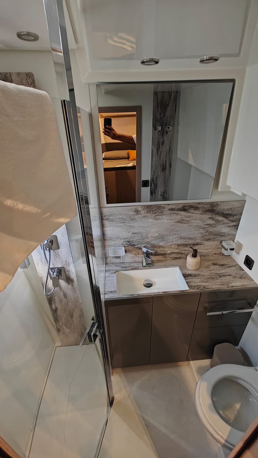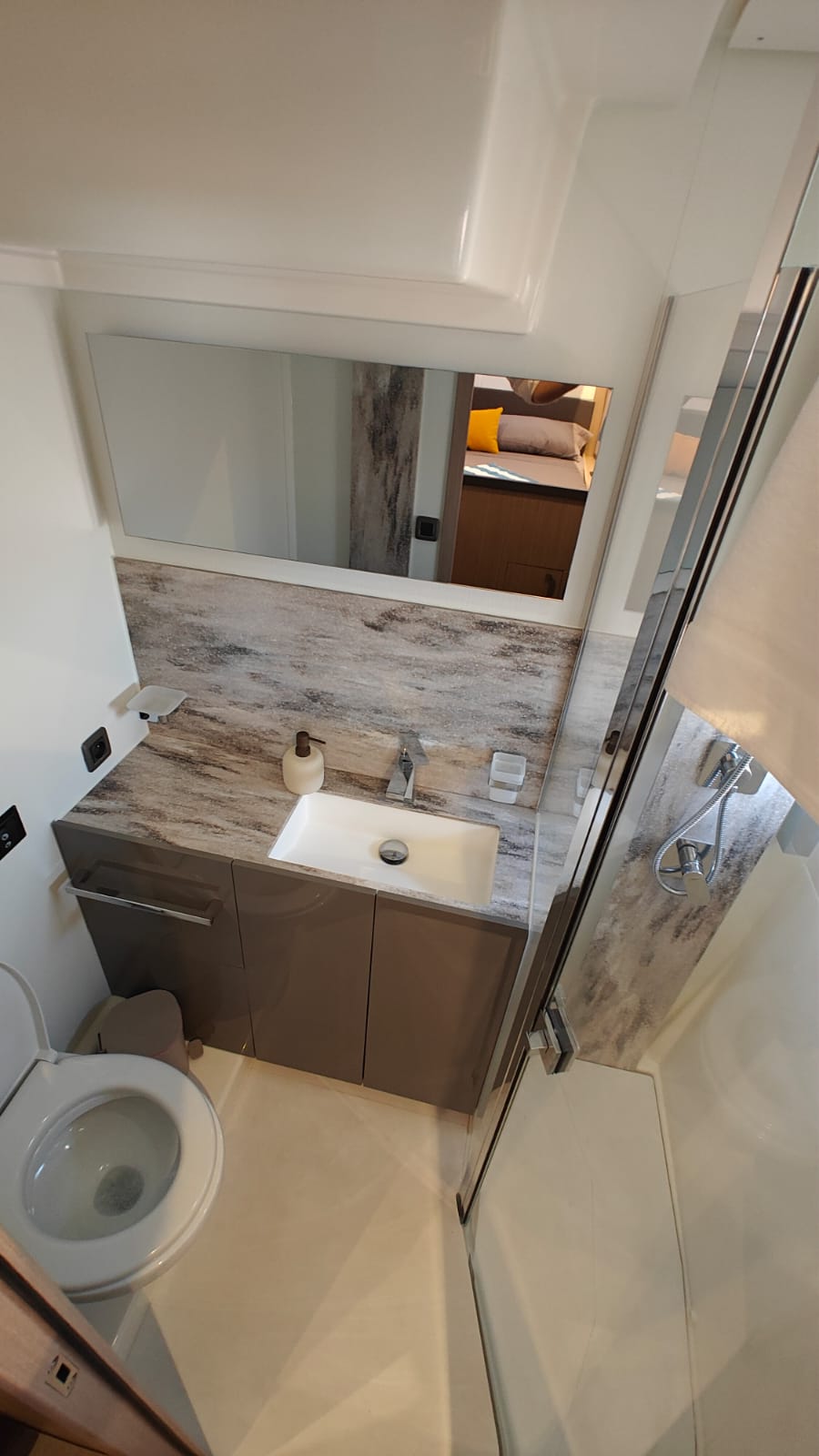 Manuevering JoystickBussolaPilota automaticoGPS ChartplotterChartplotterBow SunpadCockpit TeakCockpit FridgeAltoparlanti in pozzettoBarbecue Grill in CockpitAria condizionataRiscaldamentoPlancetta Specchio di PoppaDoccetta esternaSalpa ancora elettricoHydraulic Swim PlatformForno a microondeFrigoriferoCongelatoreCooker (num.)Batteria del motoreBatteria serviziGeneratoreEstintoreTimone a ruotaDinghy with Outboard MotorAncora di rispettoElica di PruaAcqua caldaStereo MP3/BluetoothSmart TV