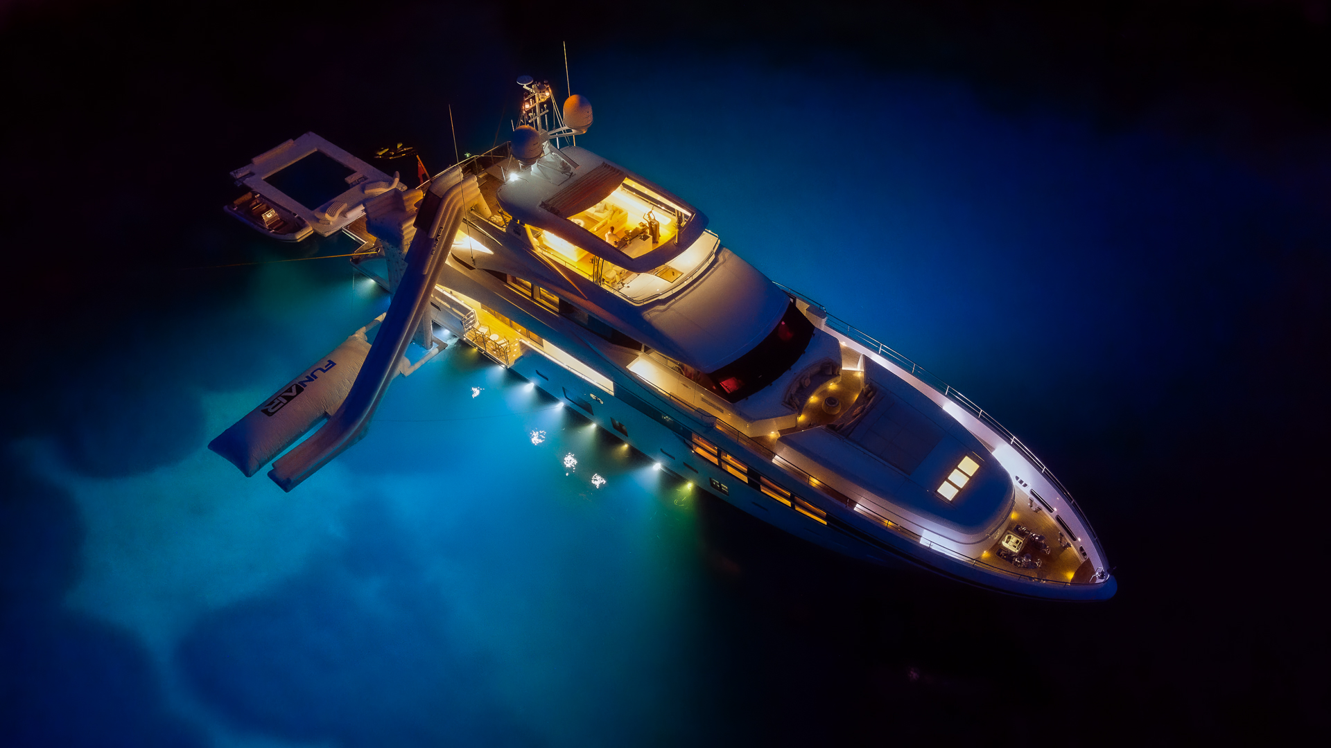 Wake boardSnorkelling gearTenderSeabobWaterskiisSUPJetskiWater slideClimbing wall & air blubBeach club with sea poolAwake Ravik SAir donutAria condizionataWiFi/internetStabilisers at anchorStabilisers underwayDeck JacuzziFlybridgeGym/exercise equipmentSunpads