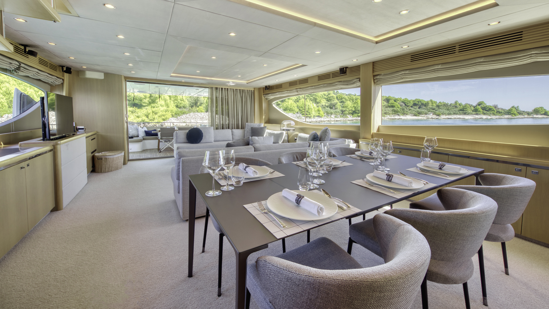 DonutWake boardSnorkelling gearFishing gearTenderSeabobWaterskiisSUPJetskiAria condizionataSwimming platformWiFi/internetStabilisers at anchorStabilisers underwayDeck JacuzziFlybridge