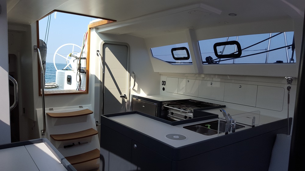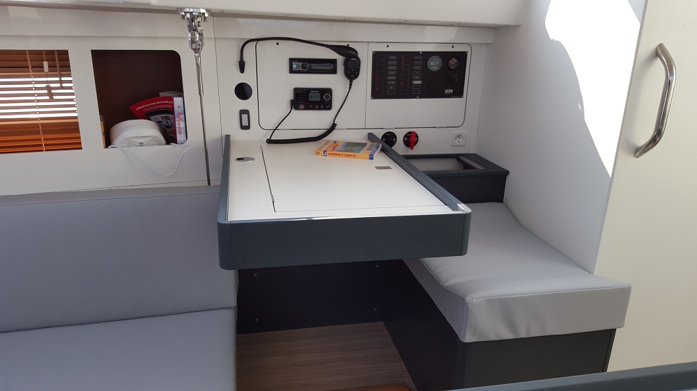 Pilota automaticoElectrical windlassSprayhoodGPS ChartplotterFridge Acqua caldaDoccia12V plugElica di pruaLazy bagLazy jackSpinnakerTimone a ruotaDinghy + outboard engineTavolo in pozzettoHeater