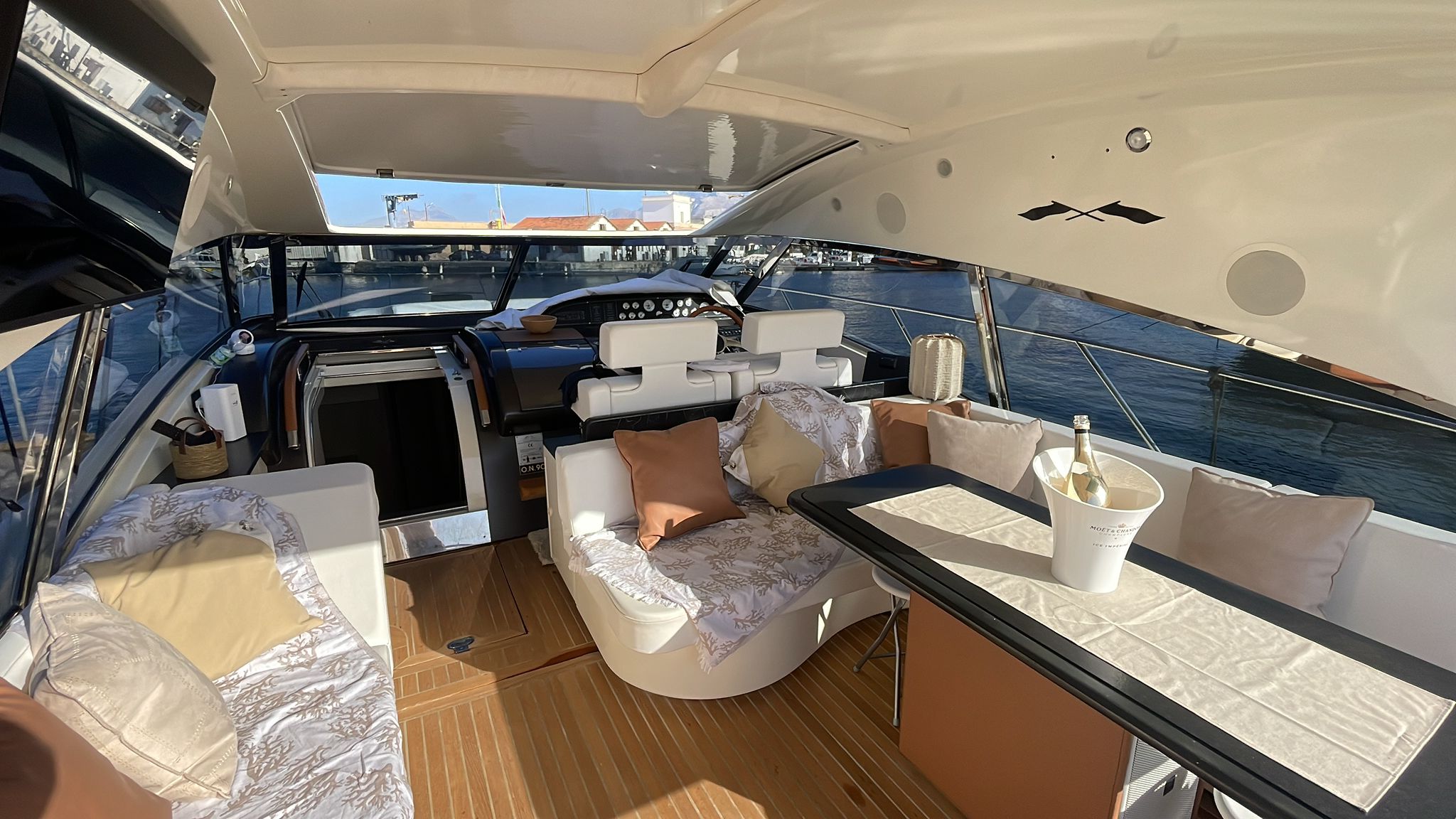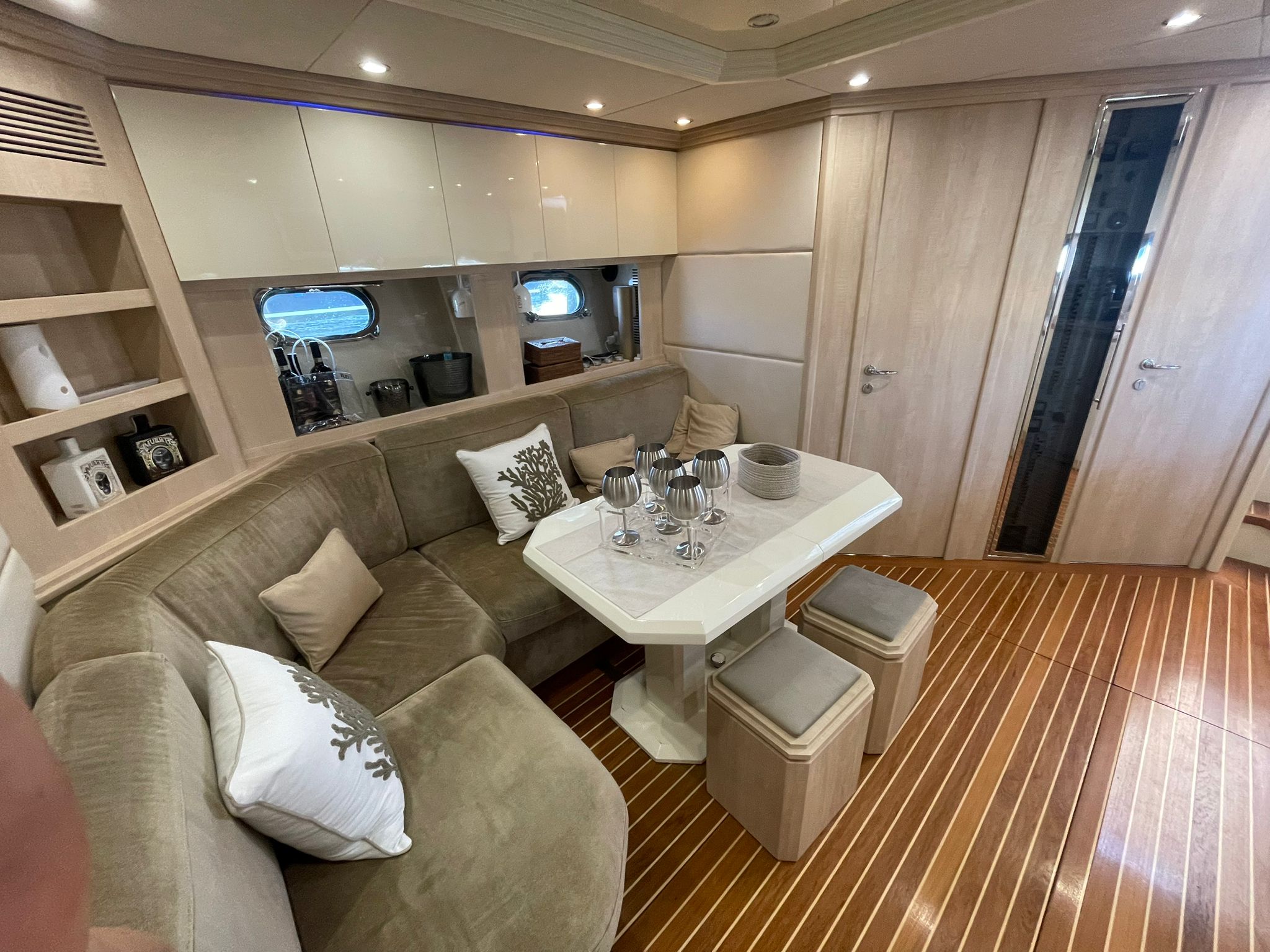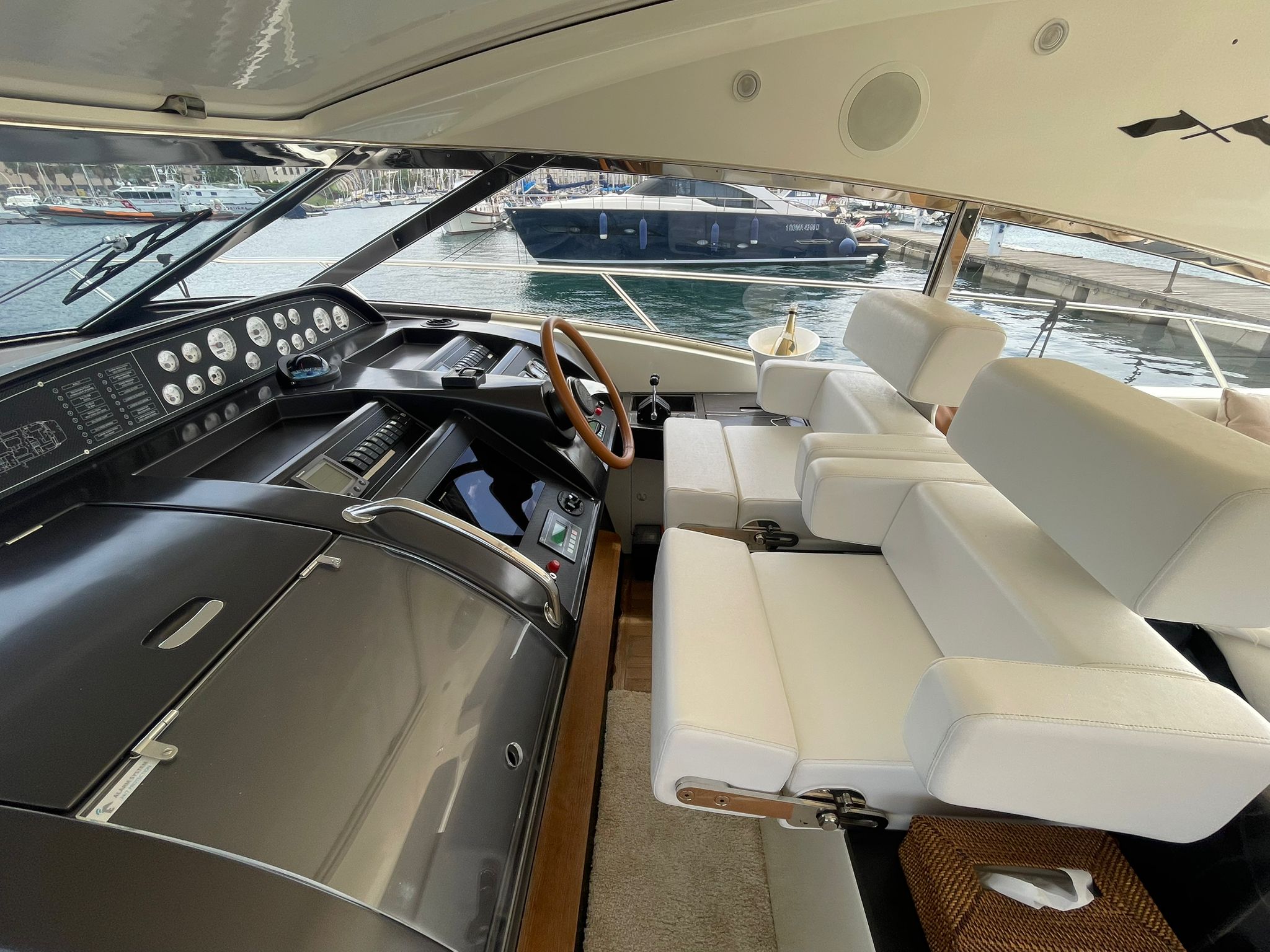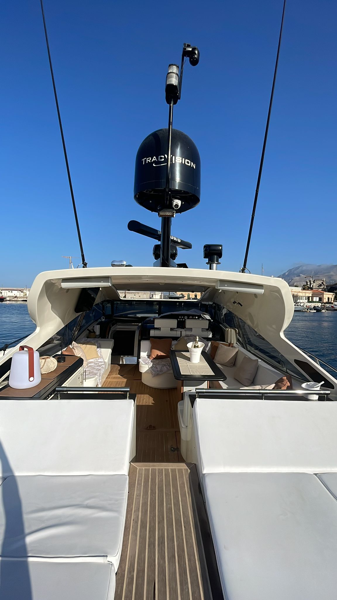 Autopilot Bow thruster Electric Generator FrigoriferoCongelatoreLavelloHobFornoWatermakerCoffee machine (electric) Cutlery and pots Microwave oven Ice Maker Aria condizionataCushions on deckHeating SystemCovered showerRadio CD / MP3 player / Audio systemInternal speakersExternal speakersFlat screen TVSunbathing cushionsExternal GPS plotterInverterRadarTeak deck (entire deck)BiminiPlancetta Specchio di Poppa