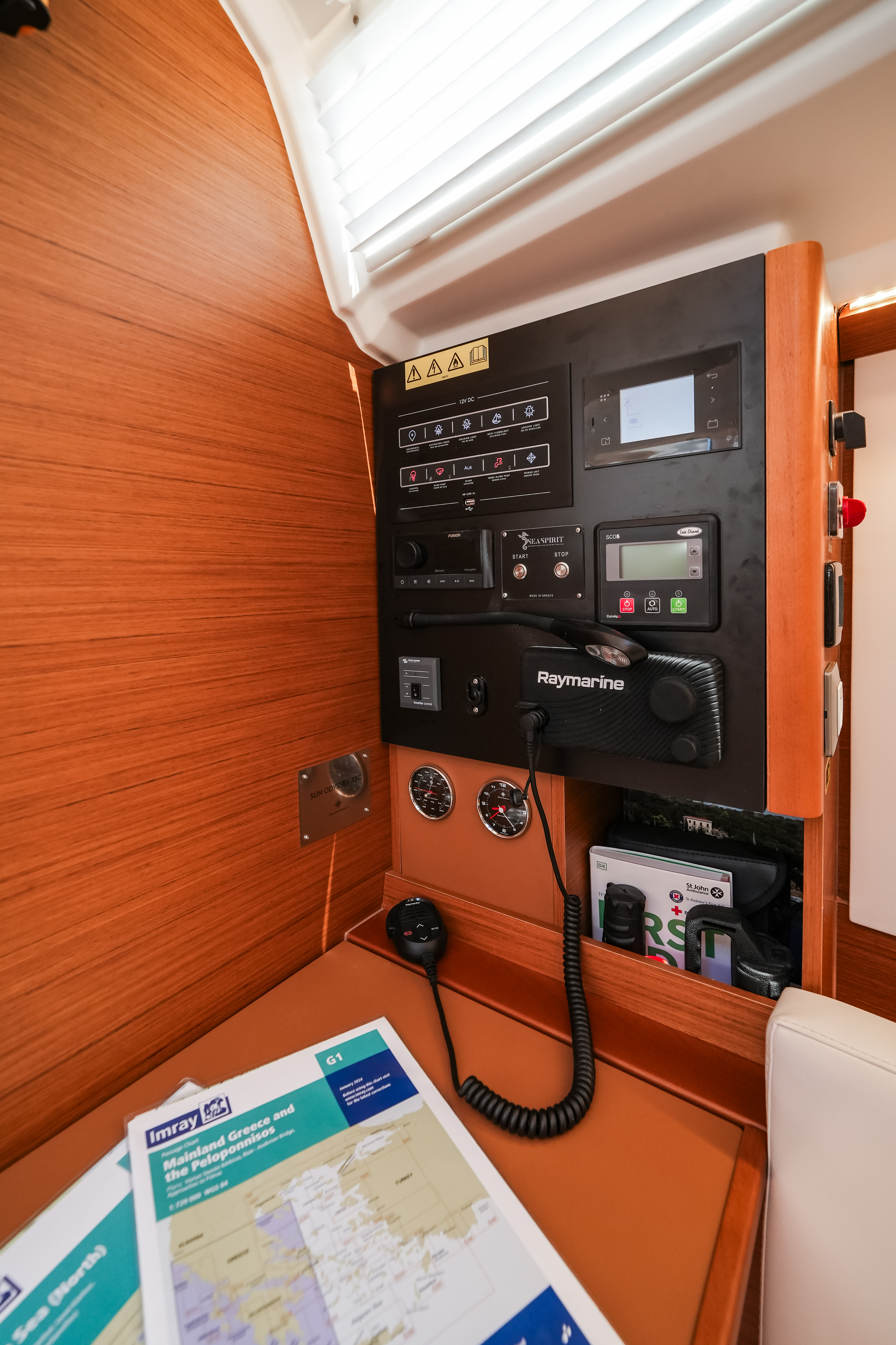 Fans in cabins /saloonAcqua caldaManual toiletPax onboard (max)Convertible saloon tableSerbatoio acquaCongelatoreAir-ConditioningGiubbotti di salvataggioHorseshoe BuoyCinture di salvataggioBuoys with floating lightBossun ChairBlack BallGenoa avvolgibileShoal draftRanda avvolgibile220V Shore power connectionCaricabatterie220 Volt socketsInverterUSB sockets in cabins220V GeneratorWater makerBow thusterPannello solareAuto PilotEcoscandaglioWind SpeedGPS PlotterTachimetroBimini topFixed gangwayTavolo in pozzettoFuoribordoTenderAttrezzatura per lo snorkelingSprayhoodBimini topCockpit cushionTenderScaletta per il bagnoPlancetta Specchio di Poppa