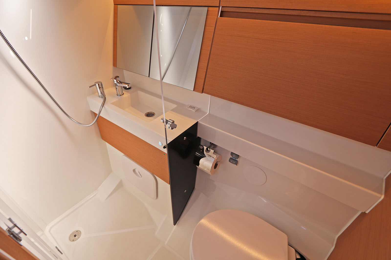 WC elettricoBilge pump - ElectricAltoparlanti esterniBilge pump - mechanicOutside showerScaletta per il bagnoKitchen utensils (Galley equipment, cutlery)Self inflating life vestZattera di salvataggioPlancetta Specchio di PoppaRadio VHFFrigoriferoCuscini in pozzettoInverter 12V-220VTavolo in pozzettoAcqua caldaTenderLenzuolaSalpa ancora elettricoStazione VentoBiminiSprayhoodPannelli solariAsciugamaniEPIRB - Boa di emergenzaRadio-CD PlayerElectric fans in cabinsPilota automaticoWind/speed/depth instrumentsElica di pruaGPS chart plotter LED Navigation lights
