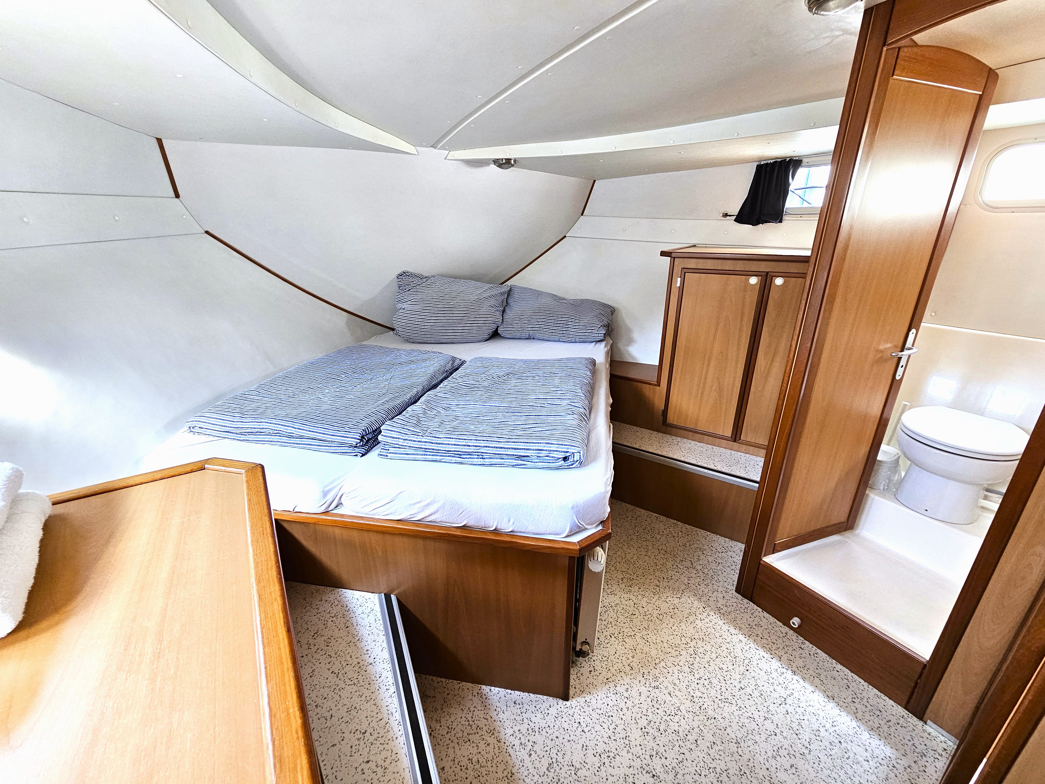 Elica di pruaStufaFrigoriferoFornoBBQ table on deckBimini TopBath ladder with bath plattformCongelatoreTVRadio